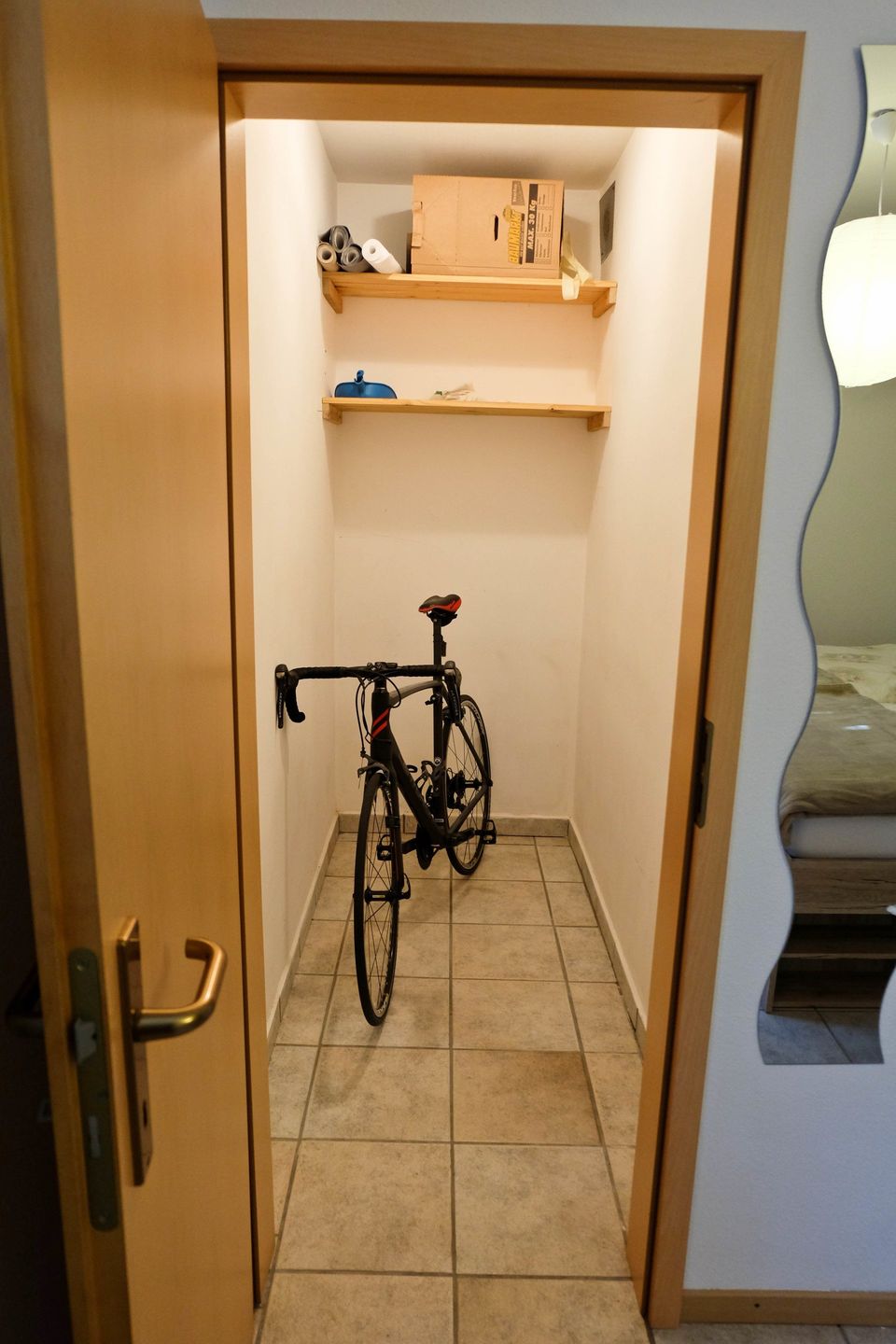 Der Abstellraum hinter dem Schlafzimmer bietet Platz für die Koffer, aber auch Behälter für Glas, Papier und Plastikmüll. Eine Biotonne kann auch auf Anfrage bereitgestellt werden. Abstellplatz für Fahrräder im Zugangsbereich, es besteht auch die Möglichkeit zwei Fahrräder im Abstellraum sicher unterzustellen.